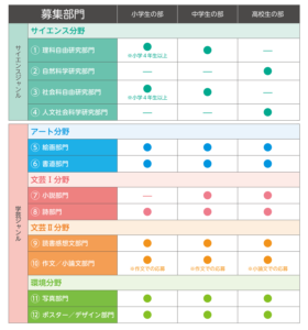 全国学芸サイエンスコンクール 募集部門一覧より引用https://www.obunsha.co.jp/gakkon/about.html