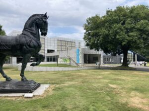 お馬さんがお出迎え。とても立派な建物に驚きます!中も広くてすごかったです。
